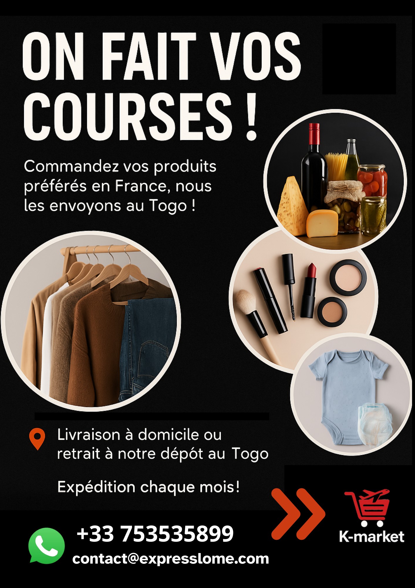 Trouvez tout ce que vous aimez – mode, beauté, accessoires – au même endroit, prêts à être livrés chez vous au Togo.